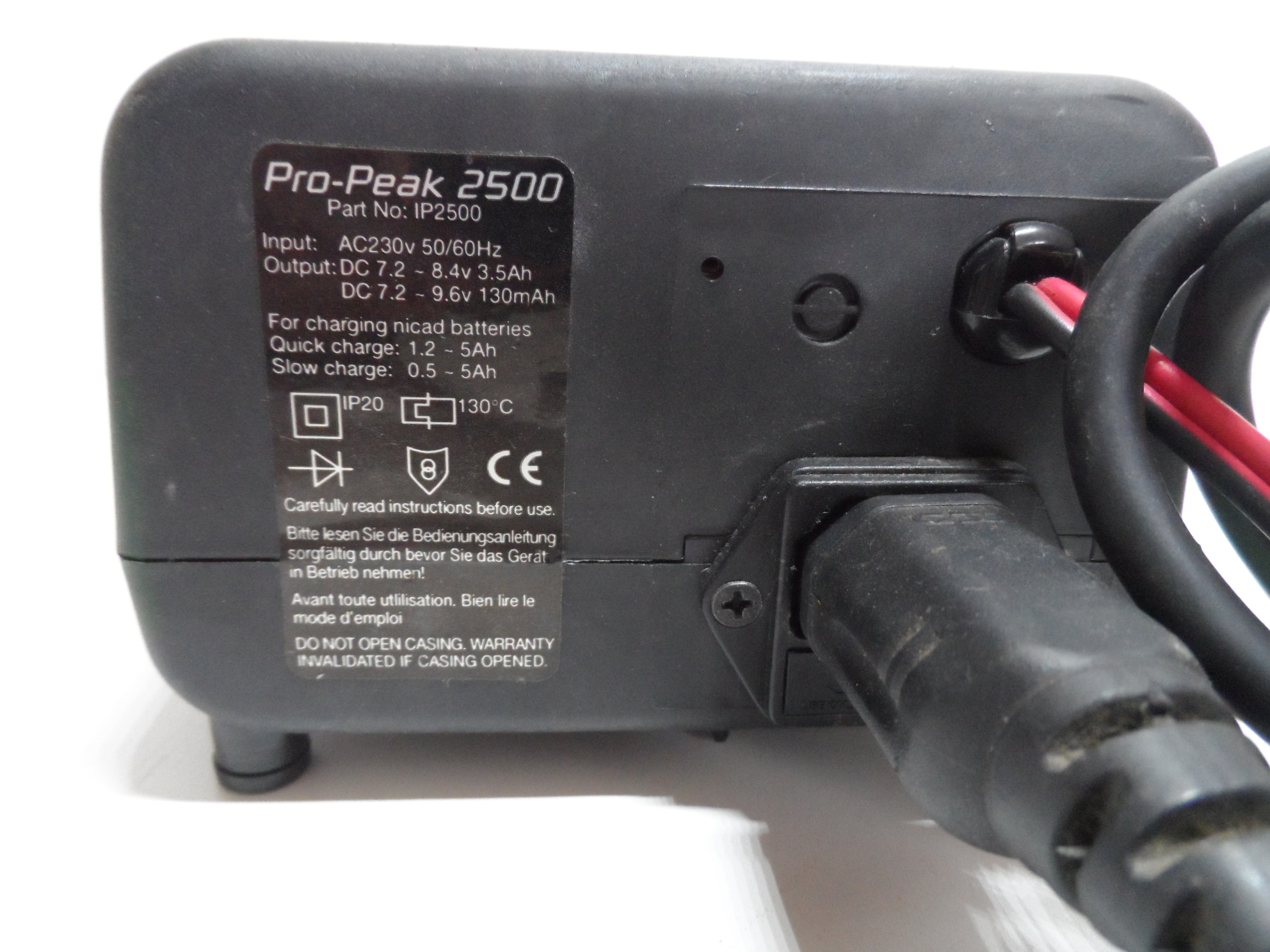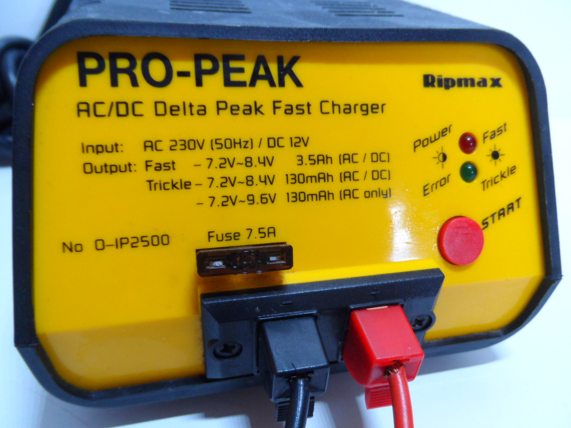 The Ripmax IP2500 is an AC/DC delta peak charger for NiCd or Ni-MH stick battery packs with auto-shut off and audible alarms for errors.