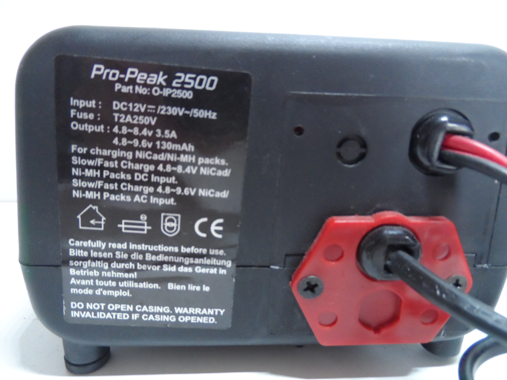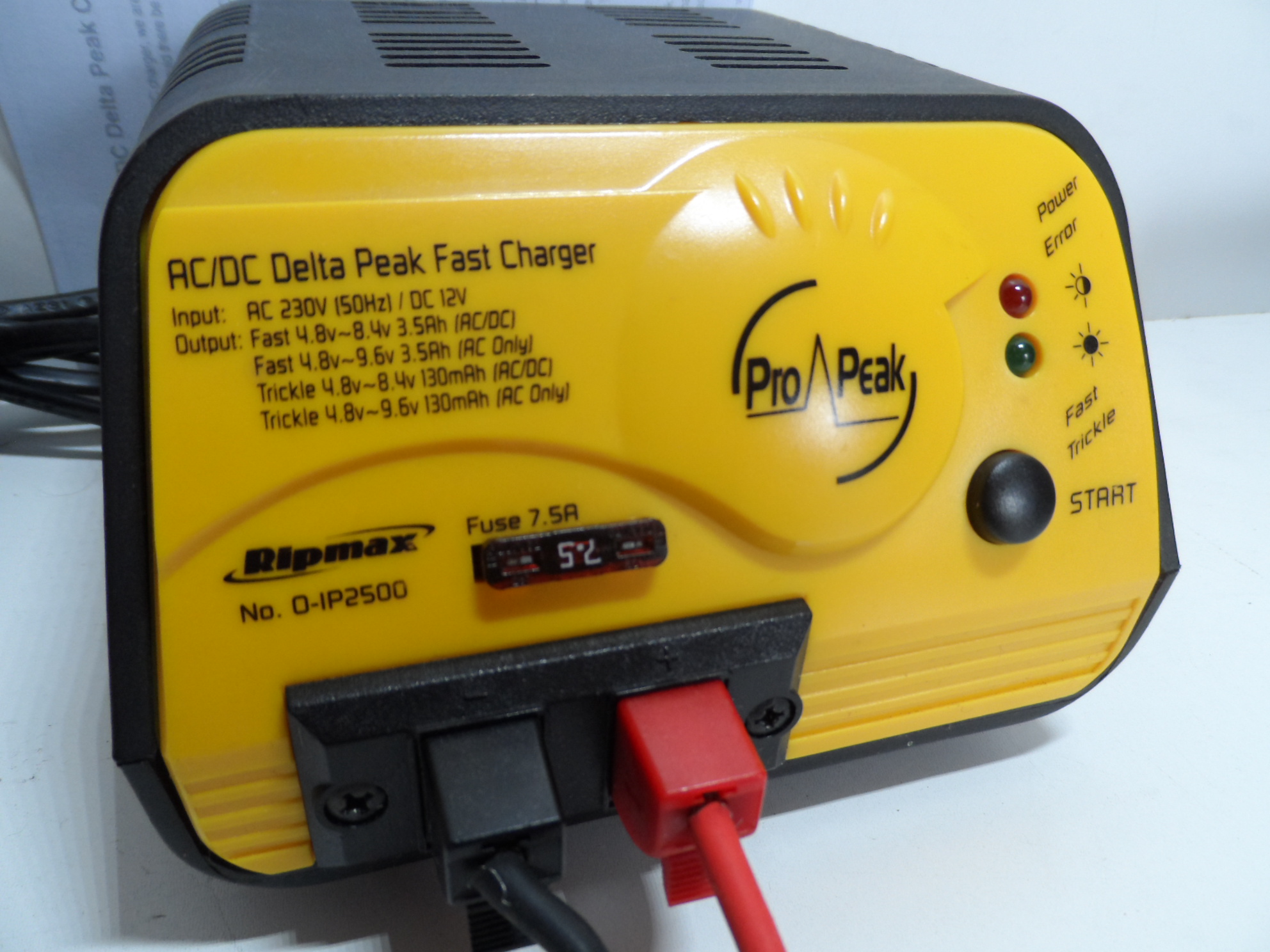 The Ripmax IP2500 is an AC/DC delta peak charger for NiCd or Ni-MH stick battery packs with auto-shut off and audible alarms for errors.