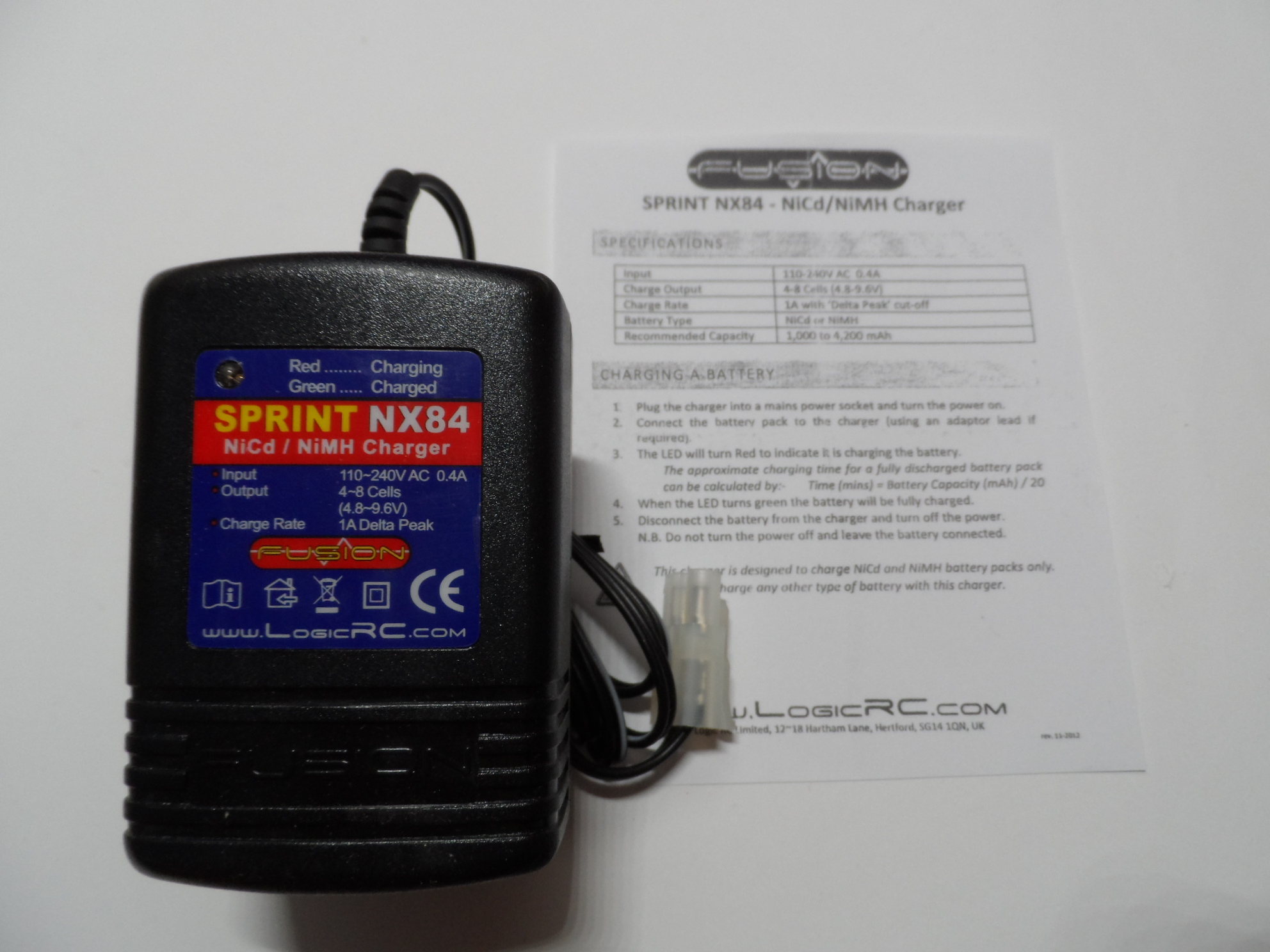 New Fusion Sprint NX84 1amp Delta Peak Trickle Battery Charger Tamiya 4.8v/6v/7.2v/8.4v/9.6v NiCd/NiMh (For 1000-4200mah Capacity Batteries)