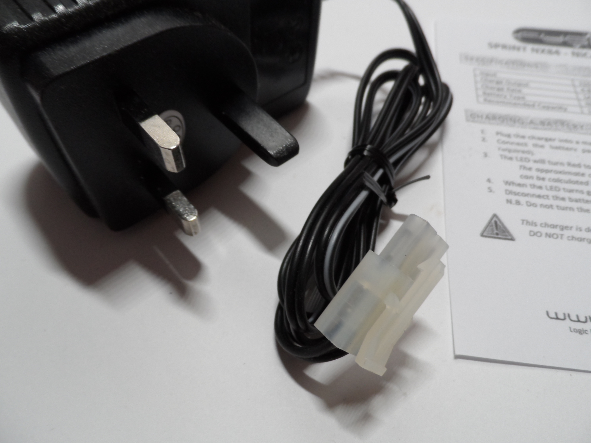 New unboxed Fusion NX84 battery charger, fitted with standard size Tamiya battery connector, 3-pin UK mains plug: